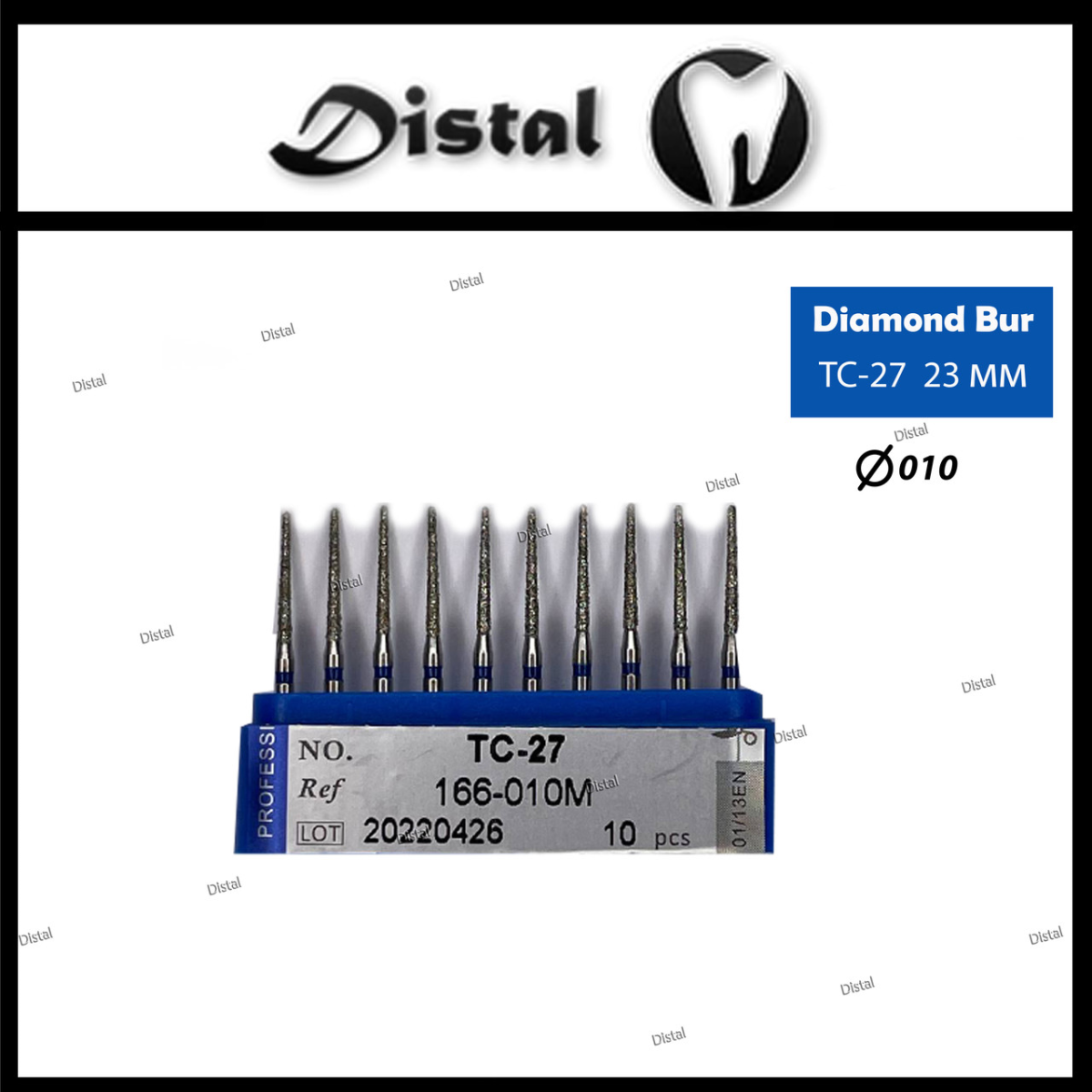 Стоматологічний бор алмазний TC-27 для турбінного наконечника 23 мм Конусоподібний, гострий кінчик