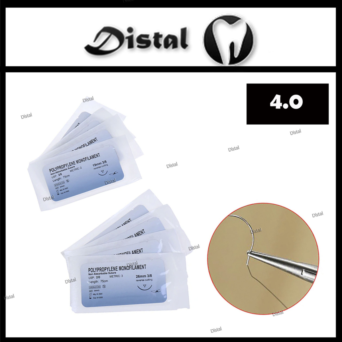Шовний матеріал 4.0 Монофіламентна нитка, поліпропілен 19 мм