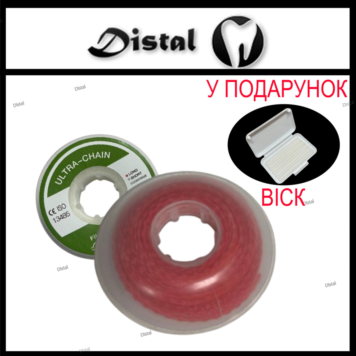 Ортодонтичний еластичний ланцюжок Long (довгий), Червоний, 1 шт.
